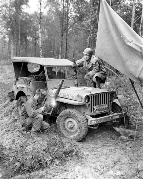 Field mods on a Signal Corps. GPW. Note the jerry cans in the rear seat